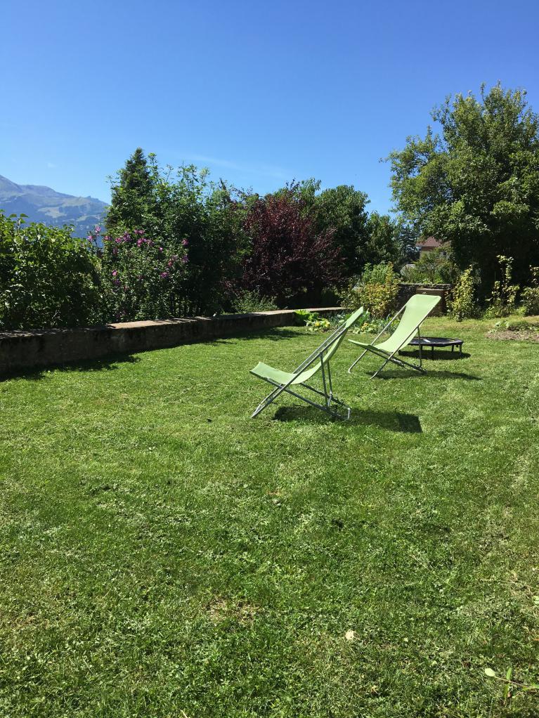 Départ pour les sentiers de randonnées à deux pas de la maison Coucher de soleil depuis la terrasse Petits déjeuners face au Mont Blanc Jardin face au Mont Blanc Chambre studio le Mont Joli Coin cuisine du Mont Joli Les Aravis Douche et lavabo Les Aravis Les Fiz
